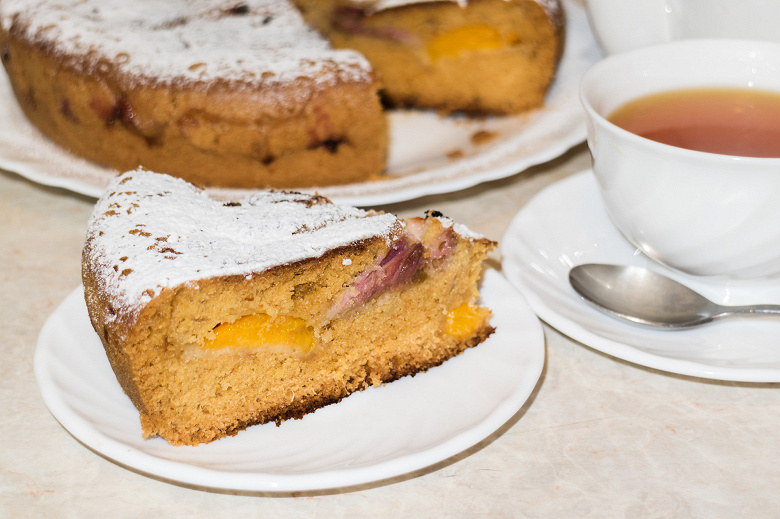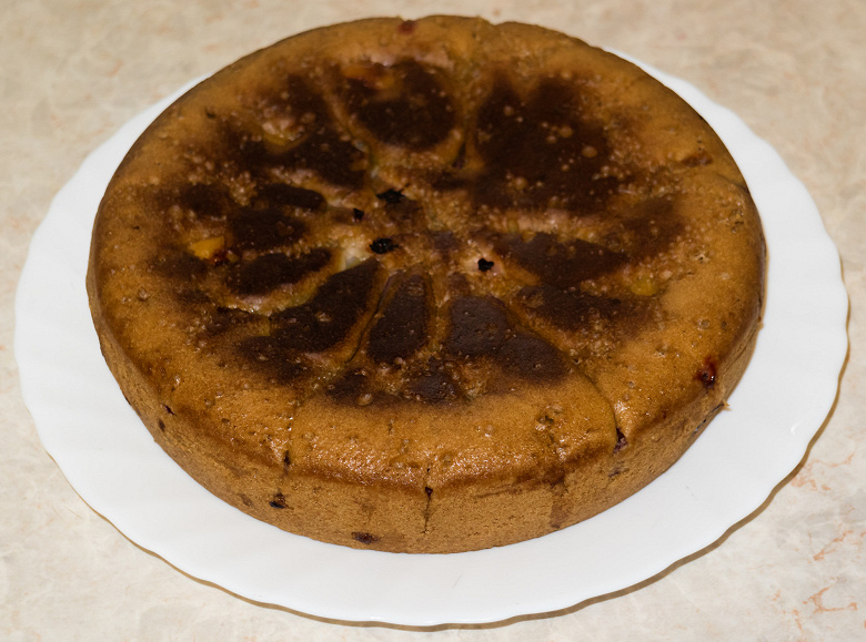 Пирог отлично пропекся, единственный недостаток — немного подгорел низ. Так что длительность по умолчанию в один час однозначно приведет к подгоранию бисквита пирога и т. п. блюд. Значит, следует или переворачивать выпечное изделие через 30 минут или уменьшать время приготовления.