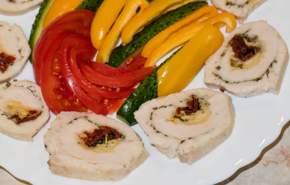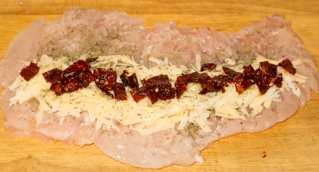Куриный рулет с сыром и вялеными помидорами