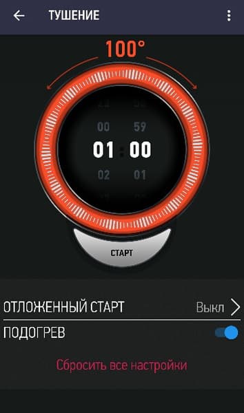 - удобная реализация функции отсрочки старта — требуется лишь задать время, к которому блюдо должно быть готово и нажать кнопку ОК;