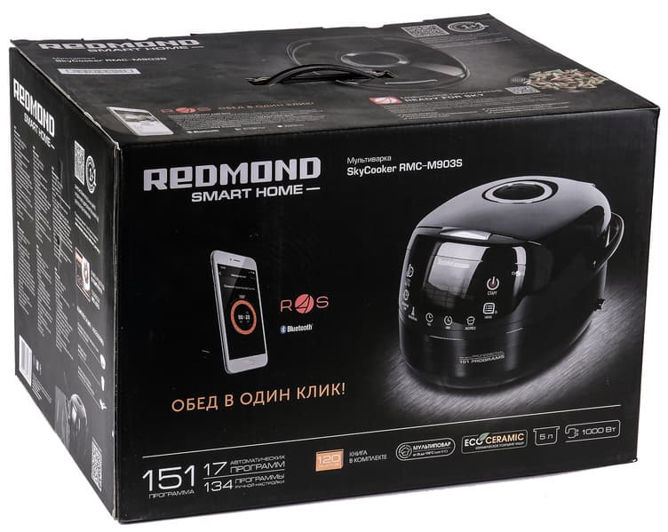 Мультиварка Redmond SkyCooker RMC-M903S проявила себя как качественно изготовленный прибор, работающий с адекватным и предсказуемым результатом. Она оснащена стандартными функциями (автоподогрев, разогрев, отсрочка старта), 17 автоматическими программами и дистанционной технологией Ready for Sky, которая позволяет управлять мультиваркой с телефона или планшета.
