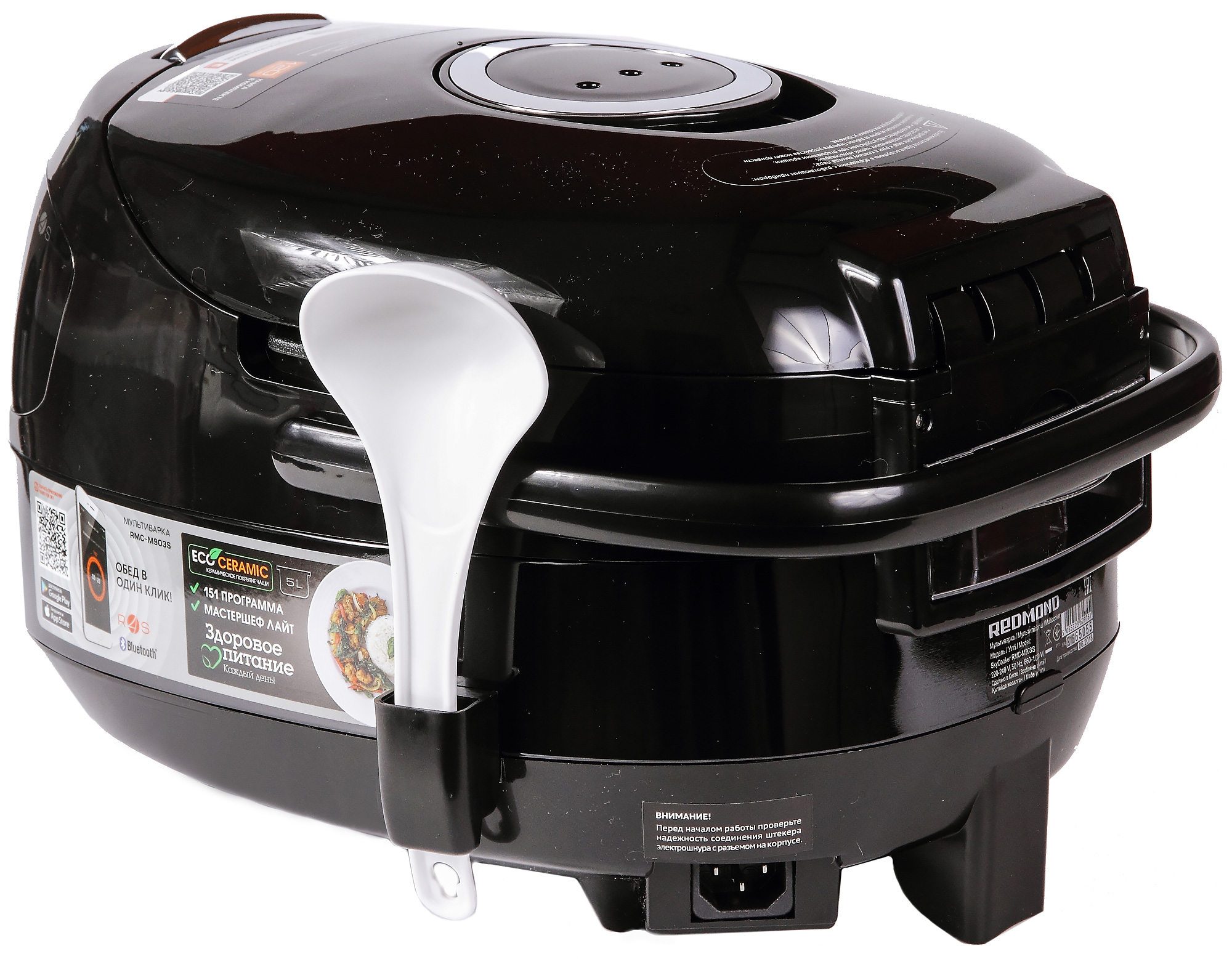 Как и все устройства Redmond, поддерживающие фирменную технологию Ready for Sky (R4S), эта мультиварка может управляться со смартфона по протоколу Bluetooth в непосредственной близости, либо через специальный гейт, оснащённый управляющим приложением R4S (подойдёт любой смартфон с доступом в сеть и Bluetooth) — из любой точки мира, где есть доступ в интернет.