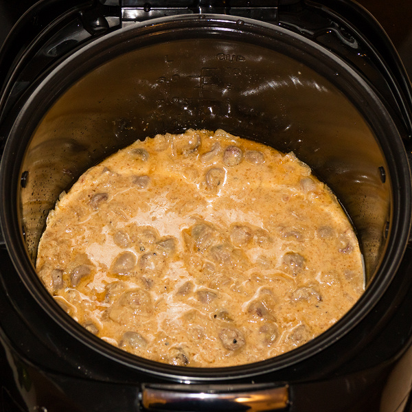 Все три использованные автоматические программы продемонстрировали хорошие результаты. Даже большое количество лука смогло поджариться и приобрести коричневый цвет, куриные субпродукты отлично протушились, сметанный соус получился насыщенный и не жидкий — значит, излишняя влага при тушении ушла. Рассыпчатая гречневая каша сварилась за 35 минут без какого-либо нашего участия в процессе.