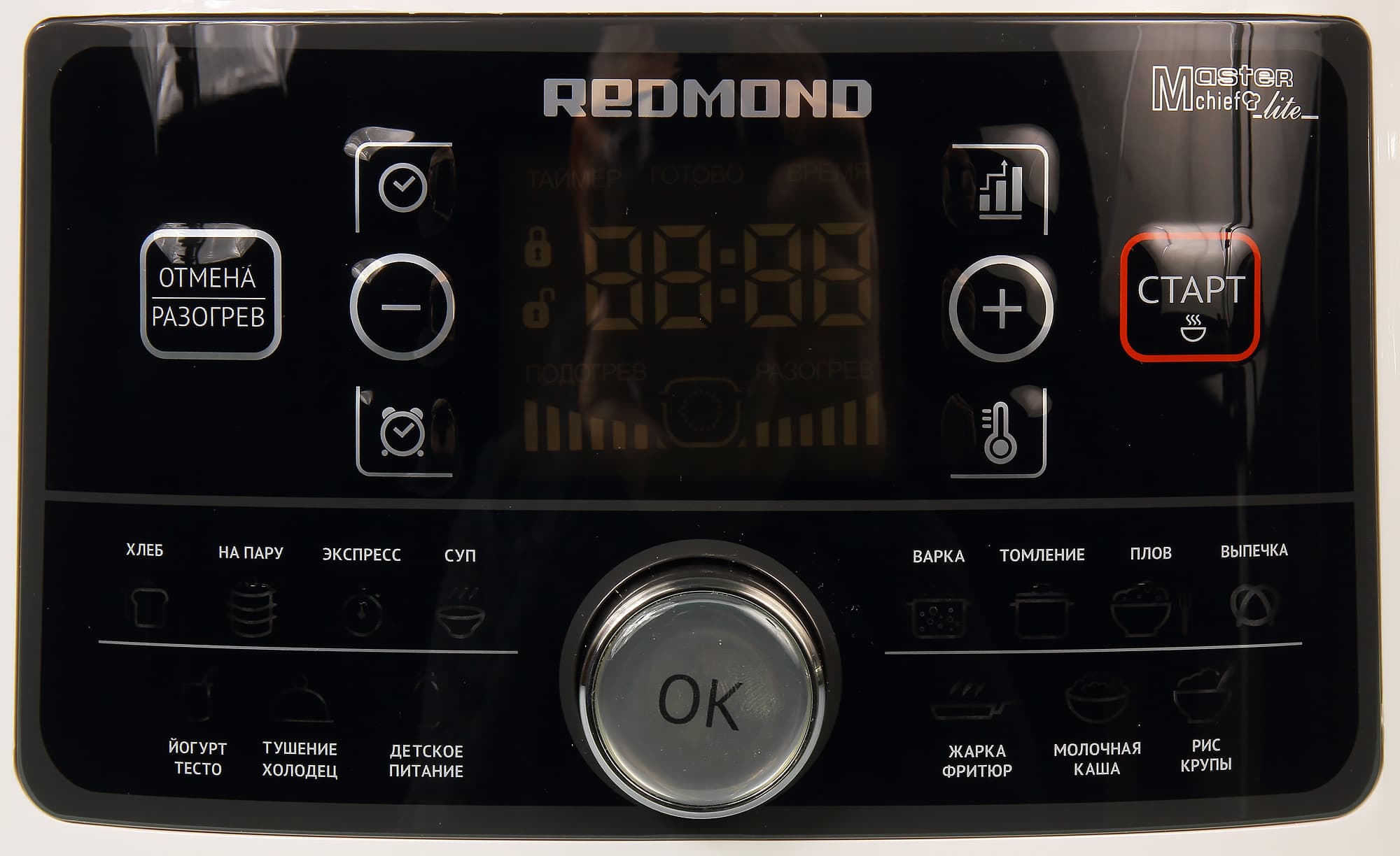 - «Старт» — включение выбранного режима приготовления, предварительно отключение функции автоподогрева.