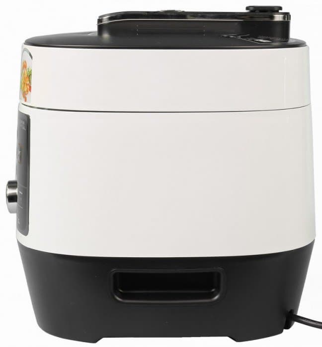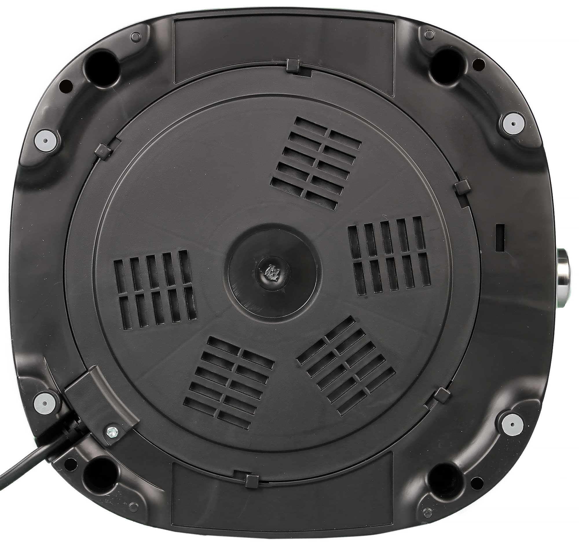 Мультиварка опирается на четыре ножки с противоскользящим покрытием. Отсека для хранения шнура у нее нет, но зато сам шнур отсоединяется от корпуса.