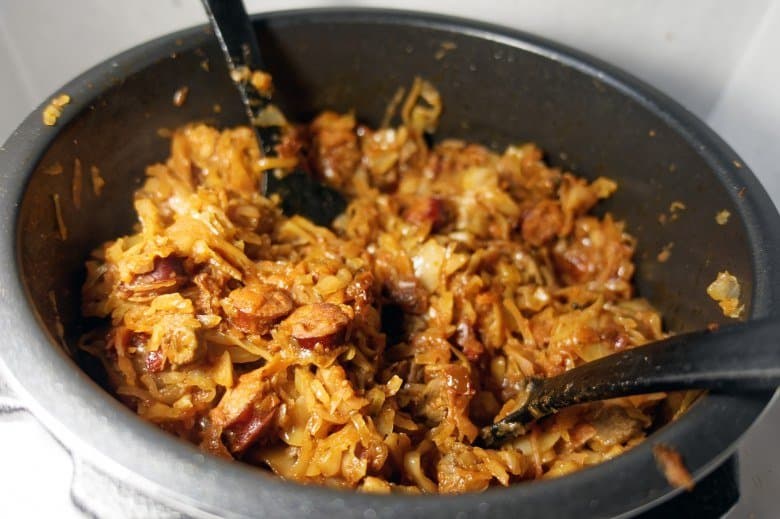 Первым делом в скороварке мы протестировали блюдо, как будто специально для этого предназначенное — бигос. В «обычной жизни» приготовление этого польского кушанья из тушеной капусты и мяса занимает несколько часов. Сайт с рецептами для мультиварок-скороварок, в противовес этому, обещал нам 30 минут. В реальности, конечно, получилось немного больше.