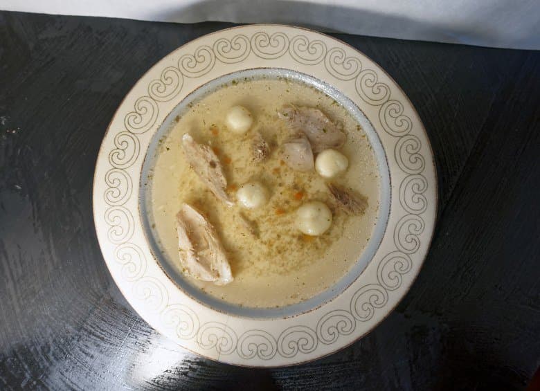 Получился довольно прозрачный бульон, в который мы сразу по завершении работы программы добавили клецки. Наученные прежними опытами взаимодействия с тестовыми мультиварками, мы готовили небольшое количество бульона, на один обед для семьи из трех-четырех человек. Если налить в скороварку слишком много жидкости и густо положить ингредиентов, суп, лишенный возможности убежать, будет пытаться превратиться в кашу-размазню. Наш аскетичный вариант с одним куриным бедром, одной маленькой луковицей и небольшим куском корня сельдерея оказался удачным.