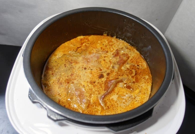Затем мы проверили режим «Суп», сварив нежный куриный бульон с клецками. Закинули в чашу куриное бедро, специи и овощи и установили режим на 10 минут с закрытым клапаном.