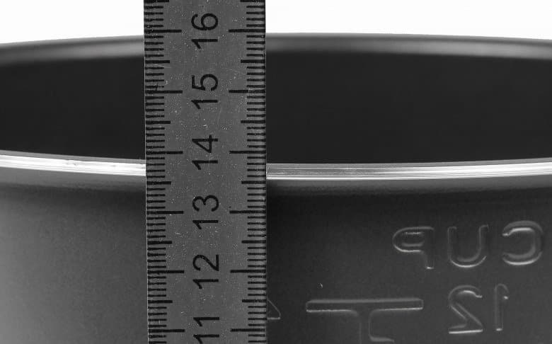Чаша размечена мерными рисками с указанием максимально допустимого объема продукта.