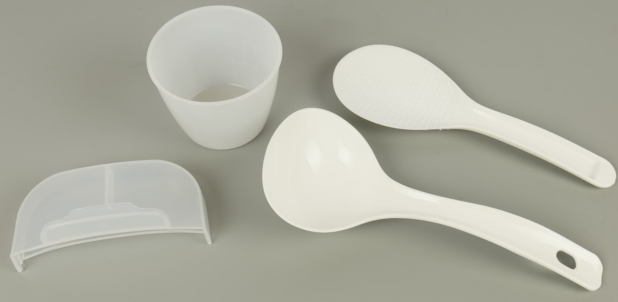 Также в комплекте к прибору идут мерный стакан, удобный пластиковый черпак и большая плоская ложка. Съемный резервуар для конденсата тоже изготовлен из белого пластика.