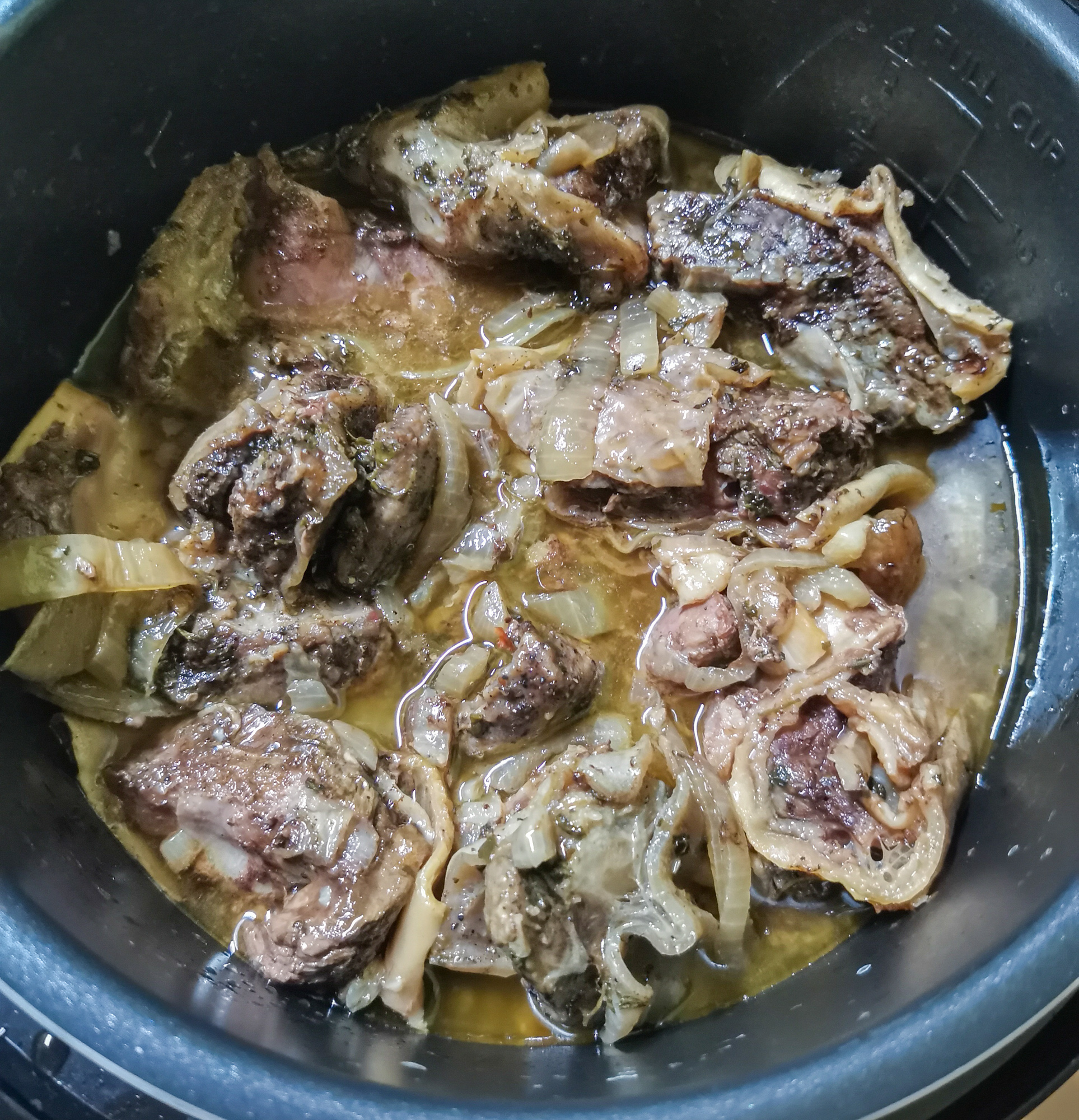 После окончания программы тушенка выглядела совершенно готовой и была при этом мягкой, но не разваливающейся. Мы оставили ее охлаждаться для образования желе.