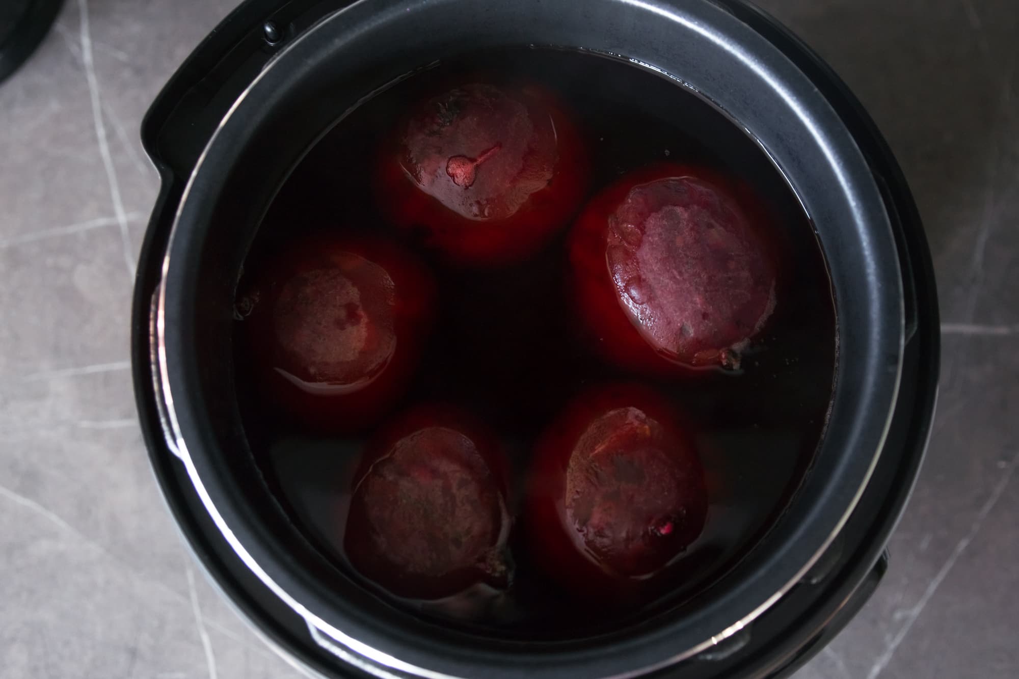 Мы взяли 1,2 кг не самой мелкой свеклы и попробовали сварить ее в режиме Суп. Залили водой, включили программу и выставили 15 минут. После сигнала о завершении работы подождали, как советуется в инструкции, минут 5, спустили пар и открыли крышку. Еще секунд 10 вода кипела.