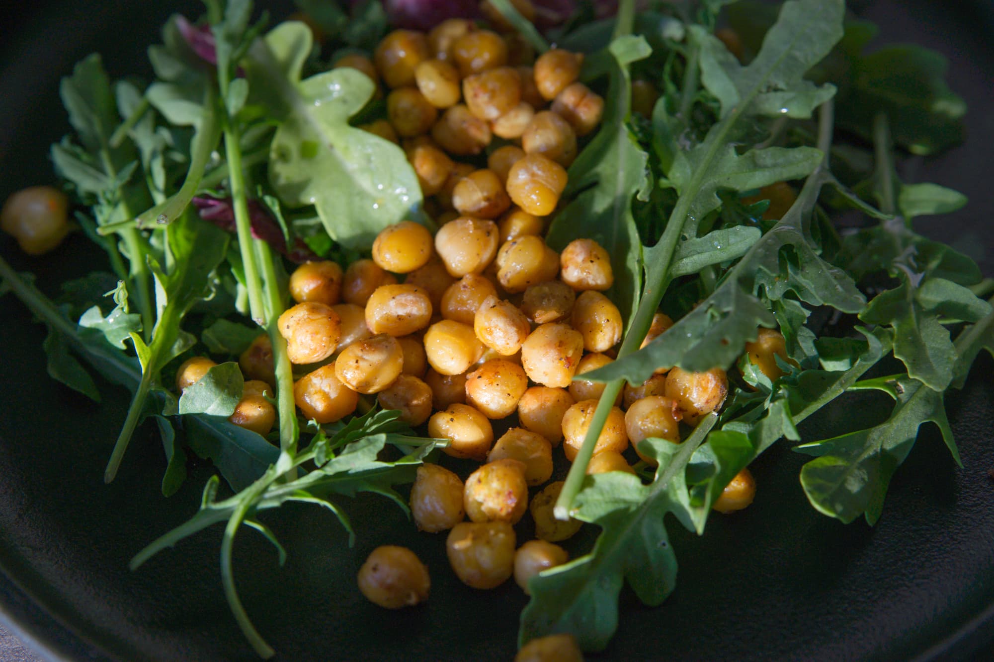 После сбрызнули его растительным маслом, обсыпали специями с солью и вернули в чашу на 20 минут в режиме Выпечка. Горох приобрел легкую корочку и стал еще вкуснее.
