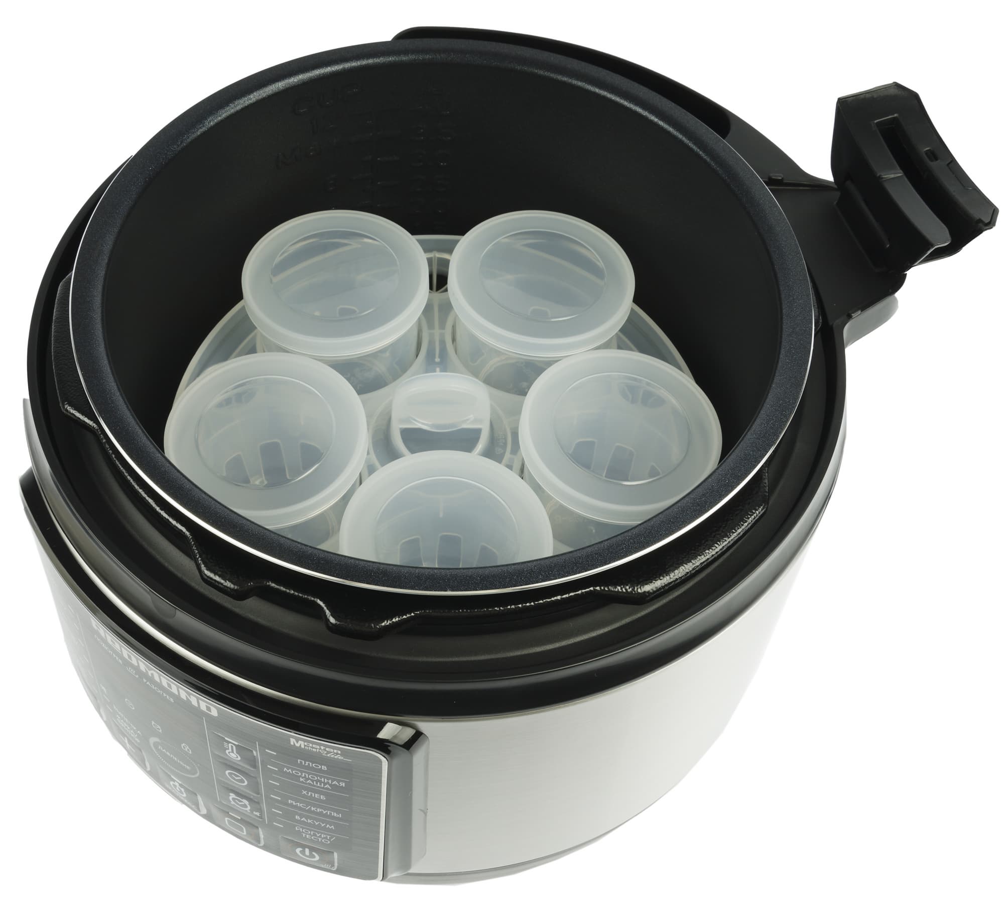 | Аксессуары | контейнер с подставкой для приготовления на пару́, баночки для йогурта с подставкой, мерный стакан, черпак, плоская ложка, книга рецептов |