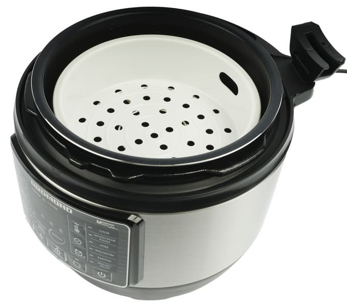 Готовка под давлением полностью оправдала наши ожидания, она действительно существенно ускоряет процесс в сравнении с обычной мультиваркой, и уж тем более — с простой кастрюлей на плите. К существенным плюсам отнесем также четырехуровневую систему защиты при работе с давлением: датчики давления и температуры контролируют показатели в камере, и если параметры превышают норму, система защиты автоматически снизит их, не останавливая процесс приготовления, или просто выключит прибор.