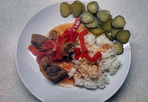Паприкаш и отварной рис