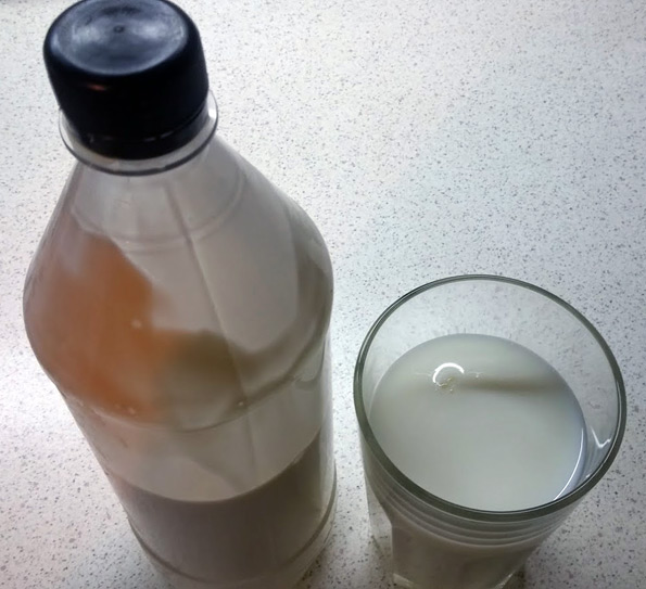 Результат: отлично. Никаких комочков — йогурт получился однородным и не очень густым. То есть, по сути, питьевым. После приготовления его нужно всего лишь разлить по бутылкам и поставить в холодильник.
