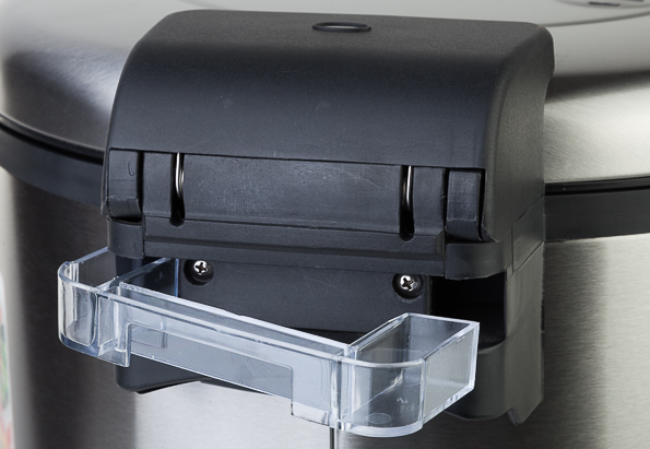 Разбирать прибор легко. Внутренняя крышка снимается, чаша вынимается и моется, а больше ничего разбирать и не нужно. Модель оснащена контейнером для сбора конденсата, так что из мультиварки ничего не течет.