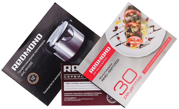 Инструкция к модели RMC-SM1000 представляет собой качественно сверстанный буклет, подробно рассказывающий о технических характеристиках прибора, правилах ухода, управлении и работы с программами. Все изложено очень внятно, так что никаких замечаний к инструкции нет.