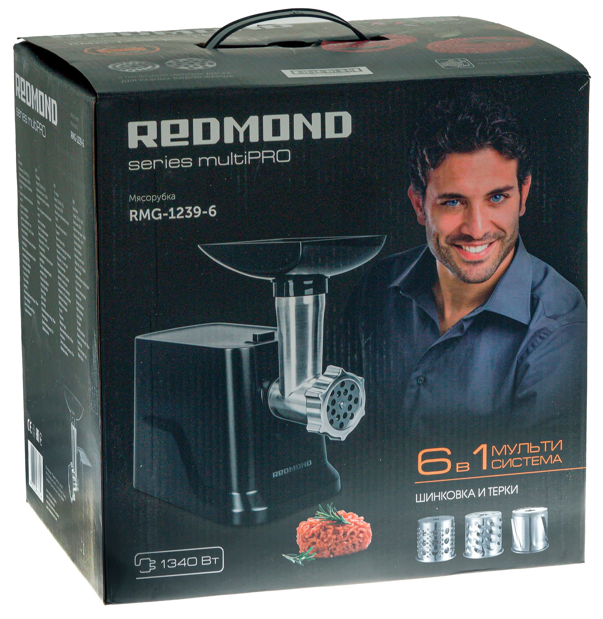 Обзор посвящен прибору, пожалуй, незаменимому на кухне — мясорубке. Однако Redmond RMG-1239-6 — не простая мясорубка, а многофункциональный аппарат, с помощью которого можно не только получить фарш разной степени измельчения, но и нашинковать или нарезать овощи, сыр и другие продукты, накрутить домашние колбаски и нафаршировать кеббе. Решение, конечно, не слишком оригинальное, но уже успешно прижившееся на рынке.