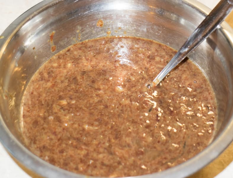 Недостаток только один: картофель натерт настолько мелко, что слить выделившийся сок проблематично. Добавили к картофелю одно яйцо, соль со специями, горсточку сухого лука, измельченного в порошок, и пару ложек муки.