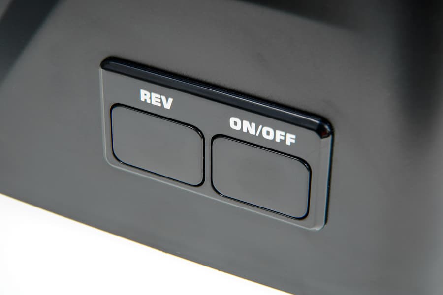 Управление мясорубками, к счастью, не улучшается и не модернизируется, поэтому, в большинстве случаев, оно невероятно простое. Redmond RMG-1239-6 не стала исключением. Две кнопки, регулирующие работу прибора, находятся в нижней части передней панели моторного блока. Правая кнопка запускает, а при повторном нажатии останавливает вращение шнека. Кнопка, находящаяся слева, включает режим реверса.
