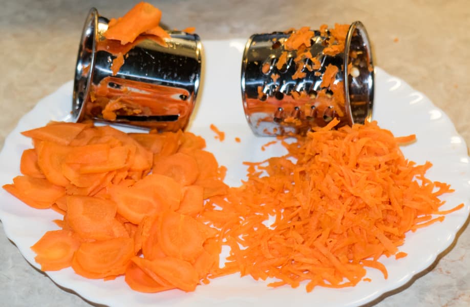 Слайсер и среднюю терку мы проверили на самом подходящем для этого продукте — моркови. Процесс и в первом, и во втором случаях прошел очень быстро, можно сказать — молниеносно.