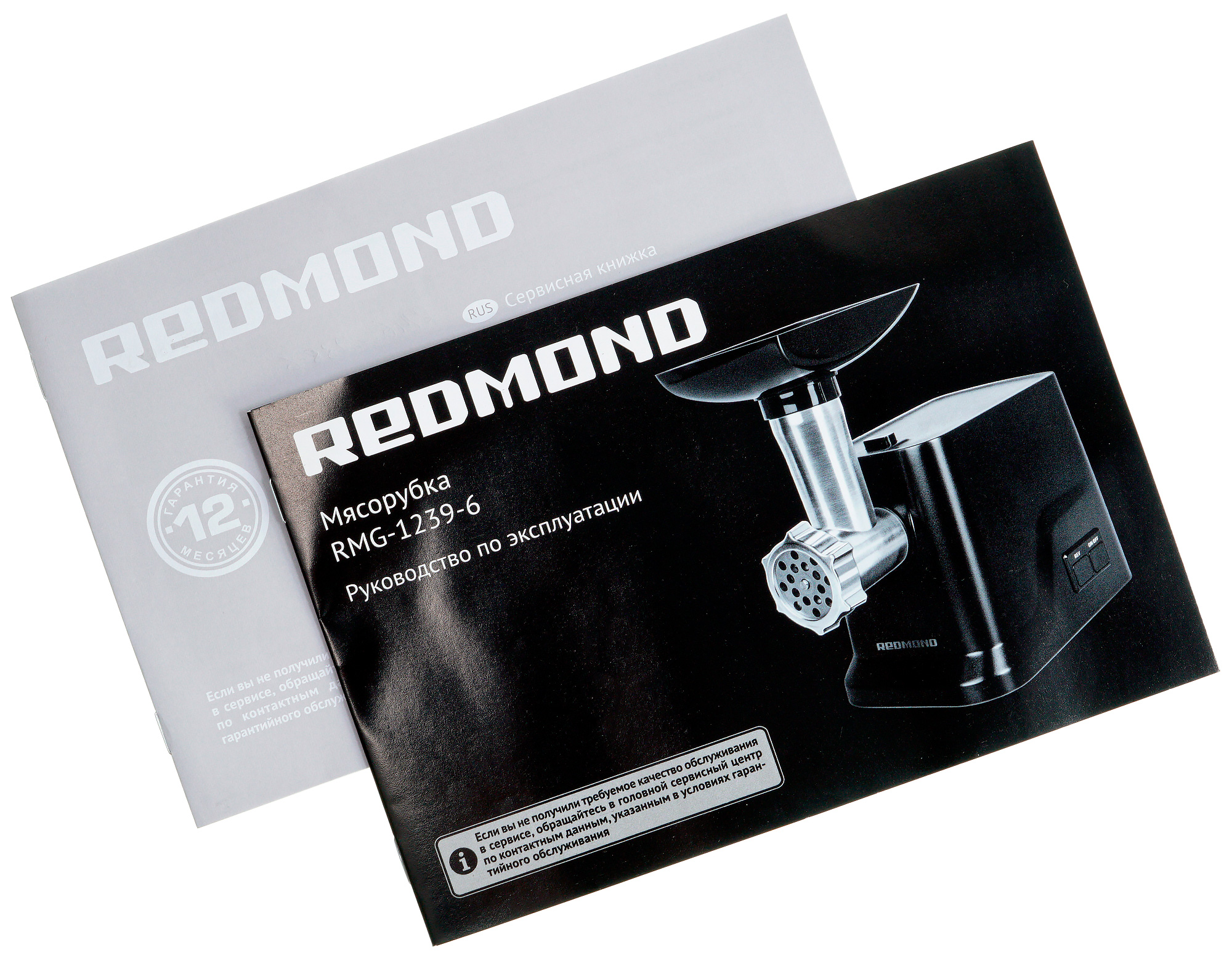 На первых шести станицах брошюры представлены изображения: схема мясорубки, сборки, разборки и использования прибора при установке насадки-мясорубки или насадки-овощерезки. Визуальное представление процессов облегчает знакомство с прибором, если, конечно, пользователь никогда не имел дела с мясорубками. Если же пользователь окажется более опытным, то из всего руководства ему могут быть интересны только сведения о максимально допустимом времени работы да возможности мыть пластиковые детали в посудомоечной машине — во всем остальном правила эксплуатации Redmond RMG-1239-6 обычны.