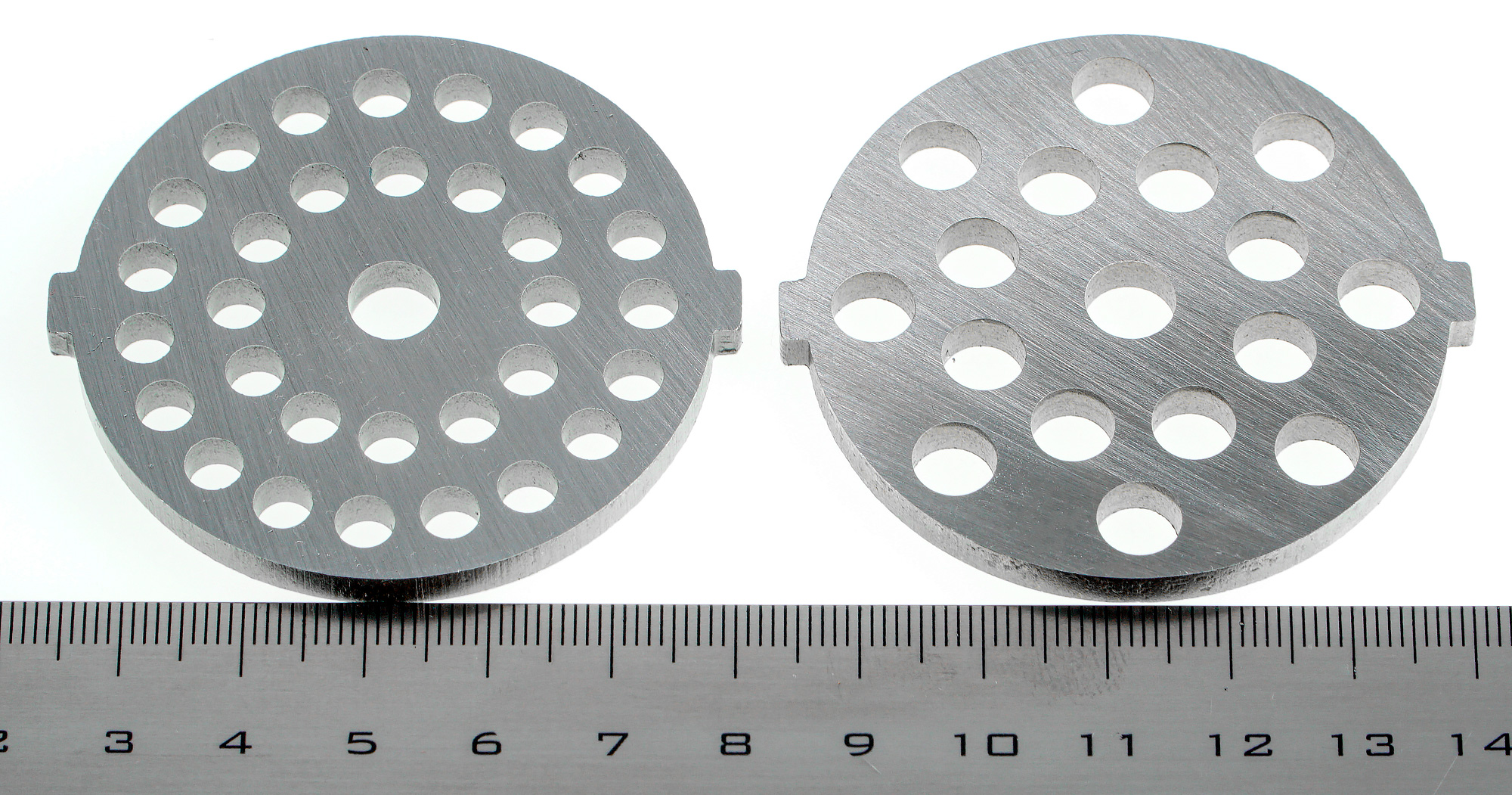 В комплект входят две перфорированные решетки: с диаметром отверстий в 5 мм (по нашим измерениям около 4,5 мм) и 7 мм. На наш взгляд, это просто идеальная ситуация, поскольку решетки со средним и крупным диаметром отверстий являются наиболее востребованными.
