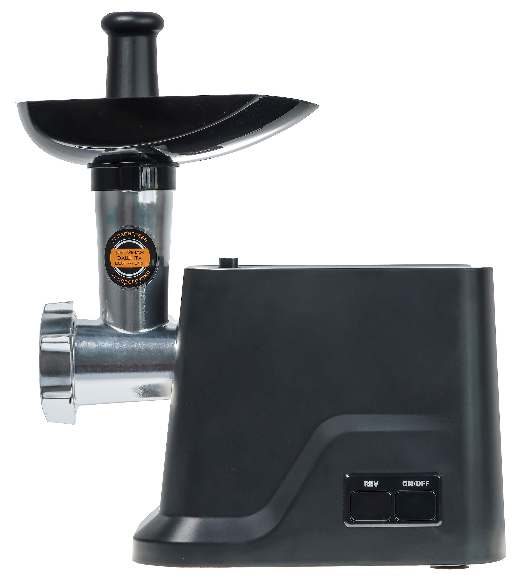 - При надавливании на кнопки управления корпус остается на месте, что чрезвычайно удобно при работе — нет необходимости касаться или придерживать прибор второй рукой, которая может быть испачкана мясным соком или фаршем.