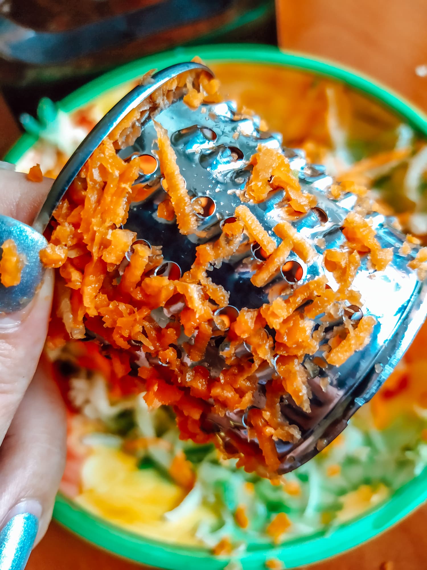 Здесь отходов уже нет: на внешней стороне терки только измельченная морковка.