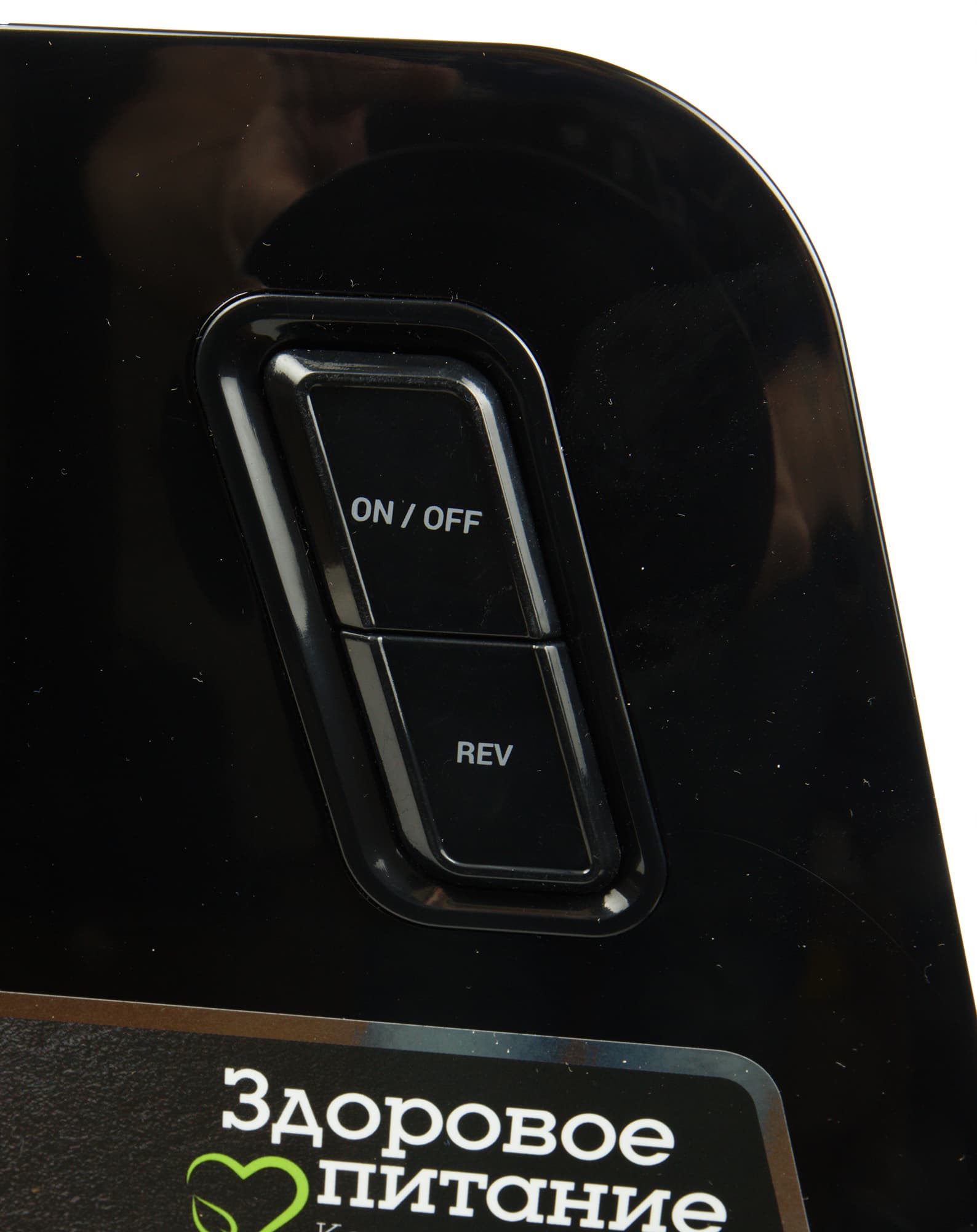 Реверс, т.е. вращение вала в обратном направлении, следует запускать после полной остановки мотора. Шнек вращается только при надавливании на кнопку. Через 10-15 секунд можно отпустить кнопку и после остановки мотора нажать «On/Off» для продолжения работы.