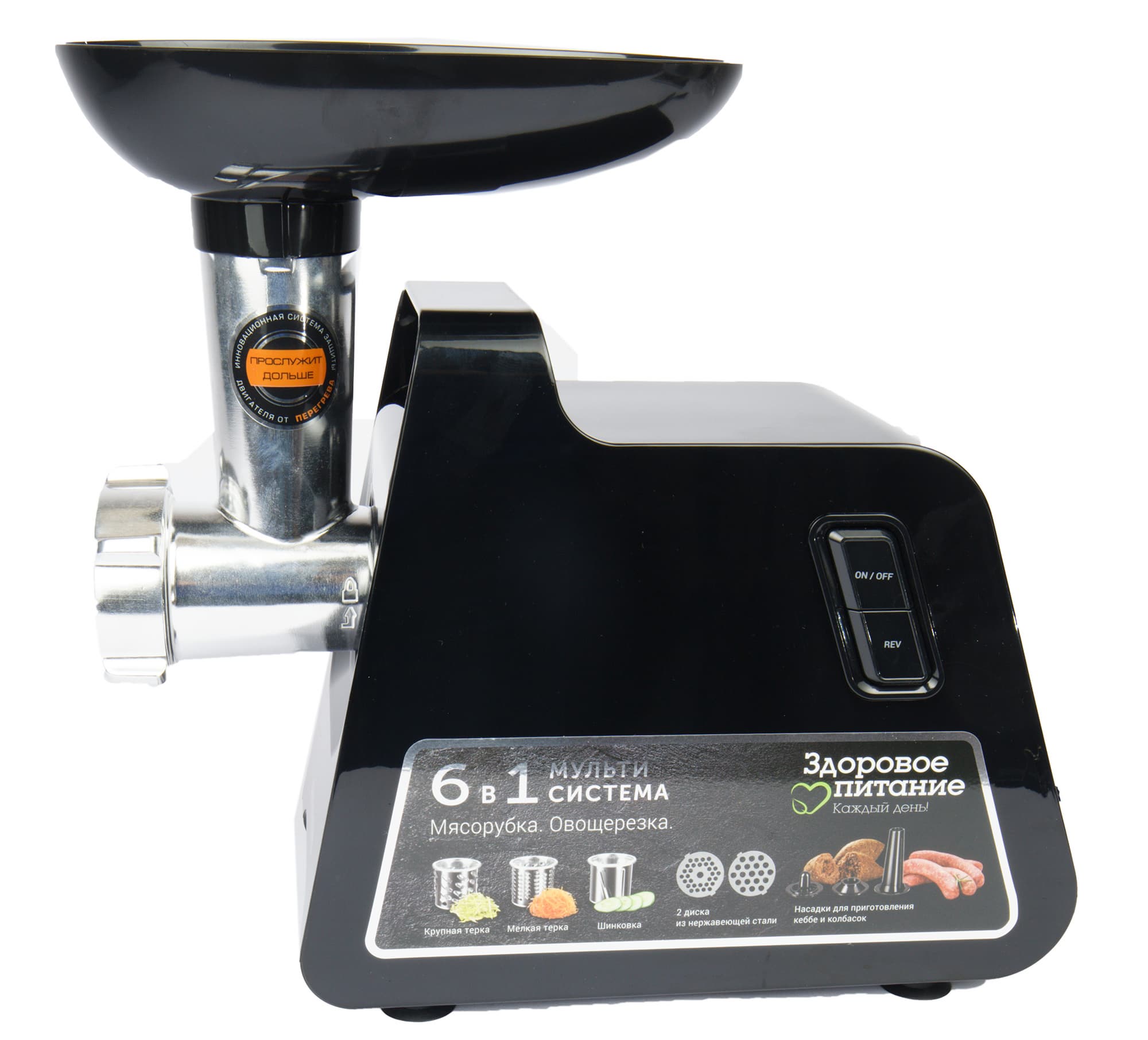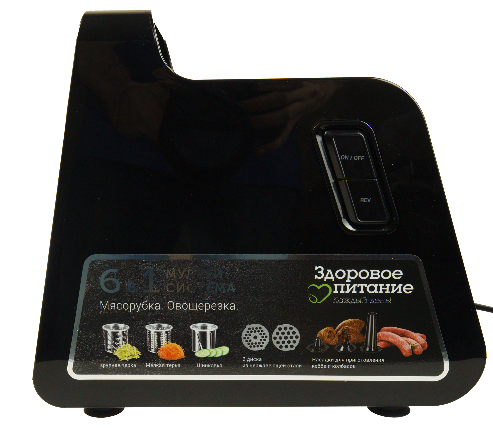 | Дополнительные аксессуары в комплекте | насадка для изготовления колбасок, насадка для приготовления кеббе, насадка-овощерезка с тремя цилиндрами: крупная и мелкая терки, шинковка |