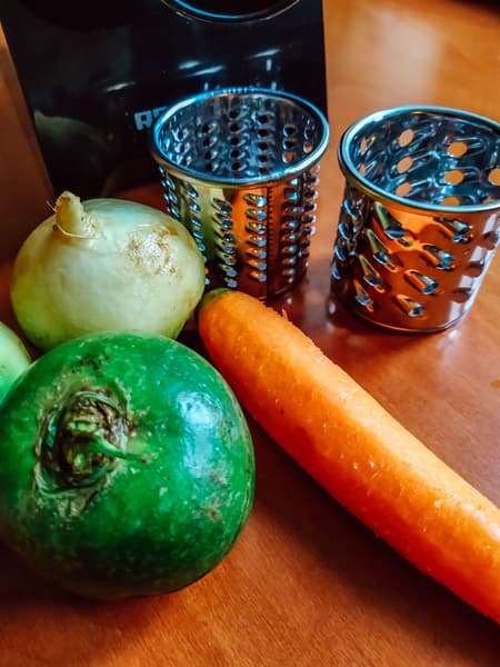 Редьку измельчили на крупной терке, а моркови досталась мелкая. На большую морковину ушло 6 секунд. Еще секунд пять — на собирание разлетевшейся стружки со стола.