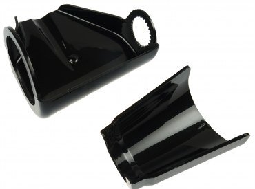 Соковыжималка состоит из дополнительного шнека, блока со съемным фильтром и регулятором выхода жмыха и двух пластиковых деталей: крышки блока и лотка для выхода сока. Регулятор — это широкий пластиковый винт, который вкручивается в специальное отверстие блока перпендикулярно его поверхности. Очевидно, он призван препятствовать выходу жмыха через специальное отверстие.
