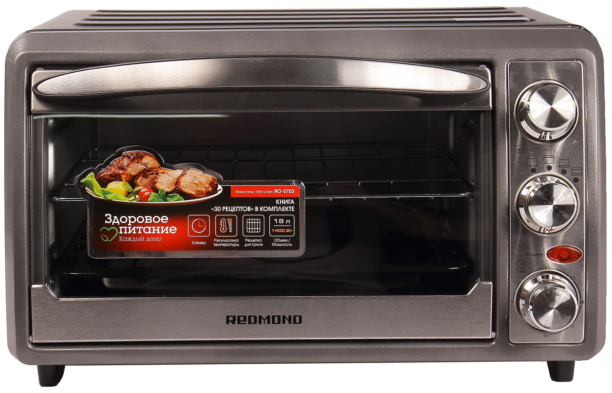 Легкая и компактная мини-печь Redmond RO-5703 понравилась нам простым управлением и предсказуемым поведением: быстро нагревается и остывает, греет сверху и снизу. Решетка и противень составляют необходимый и достаточный комплект — правда, покрытие противня оказалось очень трудоемким в уходе.