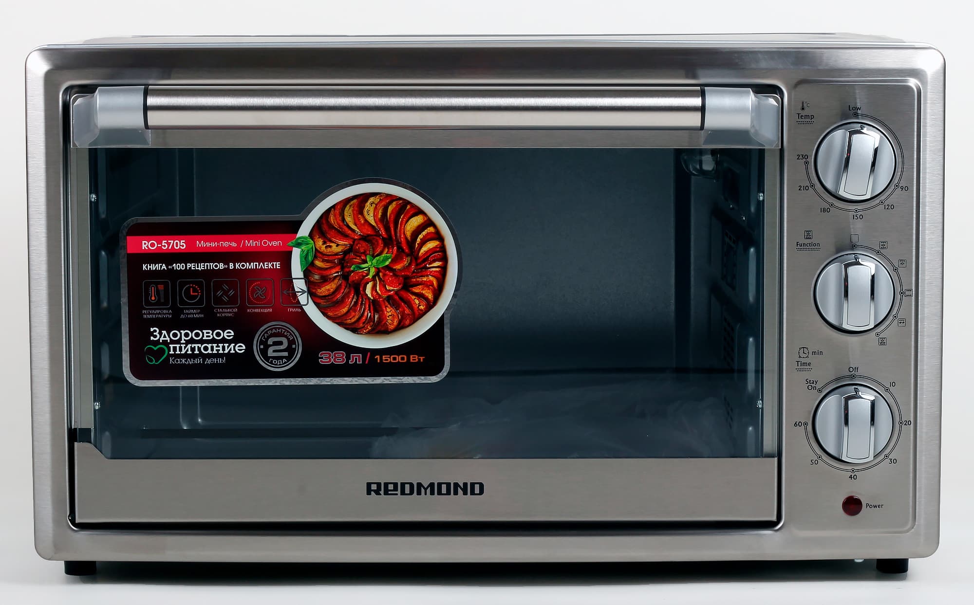 По результатам тестирования мы пришли к выводу, что мини-печь Redmond RO-5705 если и уступает обычной духовке по объему, то не уступит по количеству и качеству приготовляемых в ней блюд. Это надежный и простой кухонный прибор, который позволяет экономить место на кухне и питаться здоровой в приготовлении и вкусной пищей.