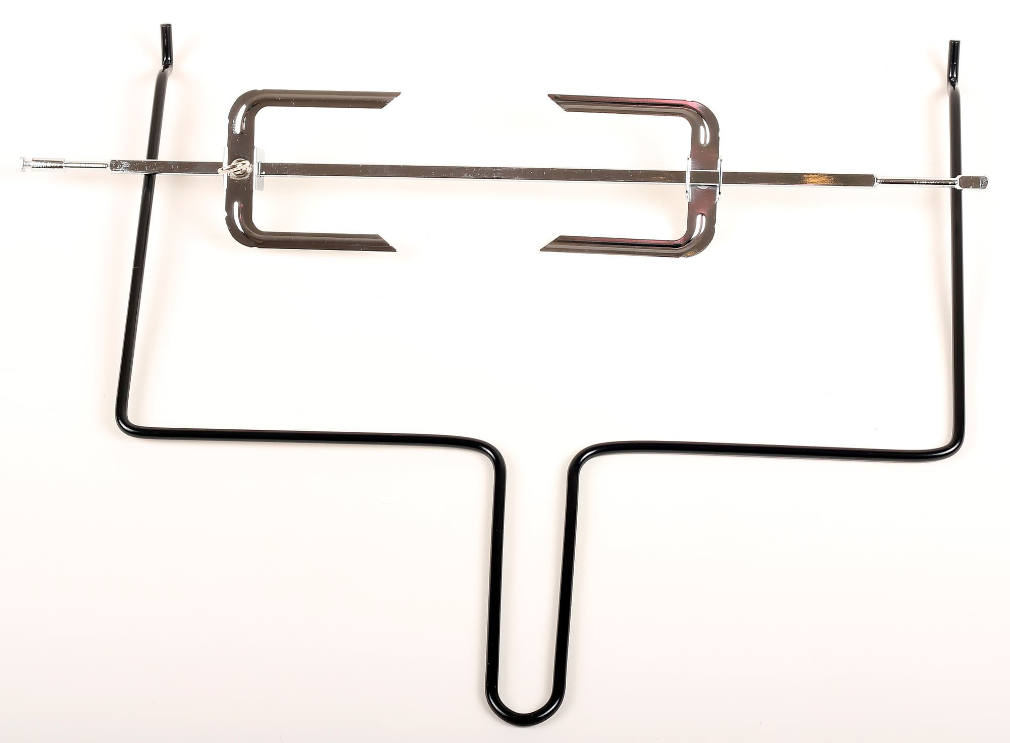На боковых стенках имеется крепление для вертела. Оно состоит из двух несимметричных частей: на правой стенке приемное отверстие, в которое надо попасть концом вертела с круглым навершием. На левой — подставка для другого конца вертела.