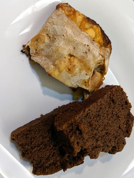 За 40 минут при температуре 180 °C кекс испекся ровно как надо, а вот штрудель оказался немного пересушен. Из этого мы сделали вывод, что противень внизу греется несколько сильнее.