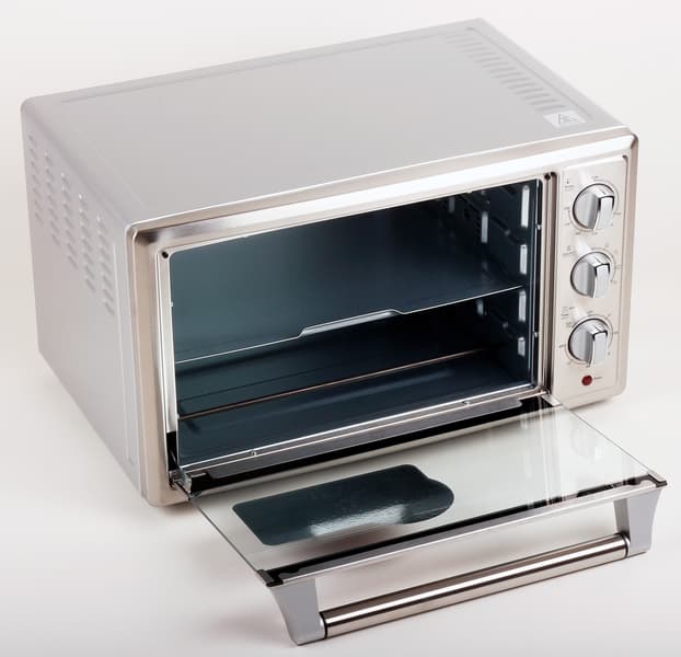 Разнообразие режимов и простота управления сделают эту мини-печь неплохим вариантом для холостяцкого жилья или для семьи, которая готовит в духовке небольшие объемы пищи. А после использования ее можно убрать в кладовку или на шкаф.