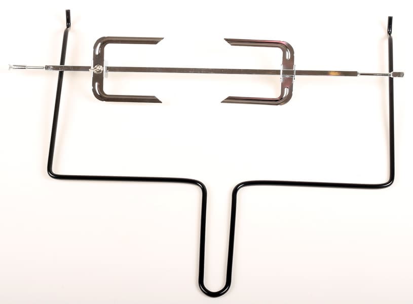 Также в комплект входят решетка, вертел и два ухвата для доставания горячего вертела или решетки из печи.