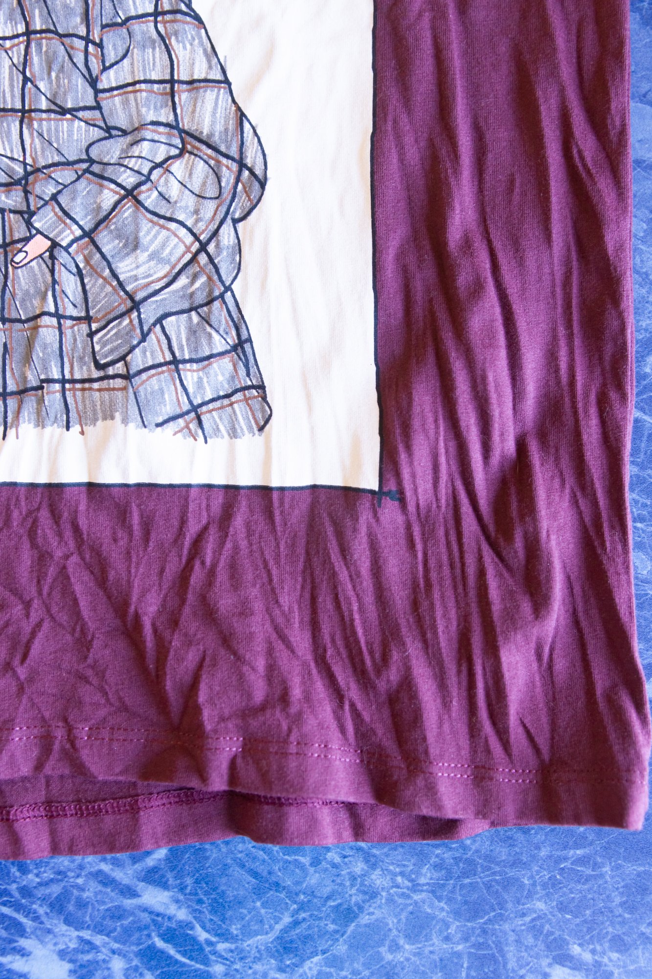 Футболка давно лежала в шкафу в смятом виде и это не лучшим образом отразилось на ее внешнем виде.