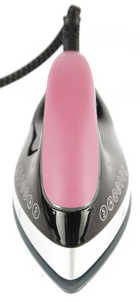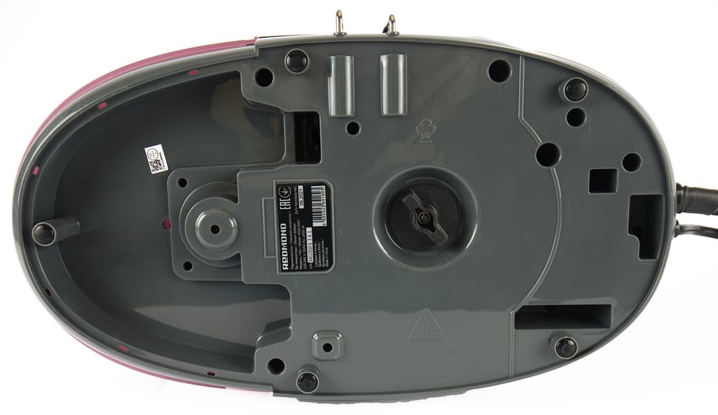 Основание утюга выполнено в форме, напоминающей треугольник. И несмотря на отсутствие каких-либо противоскользящих накладок, утюг достаточно устойчиво располагается на поверхности. Место соединения шланга подачи пара с утюгом защищено гибким 3-сантиметровым кожухом, предотвращающим повреждение кабеля от перегиба.