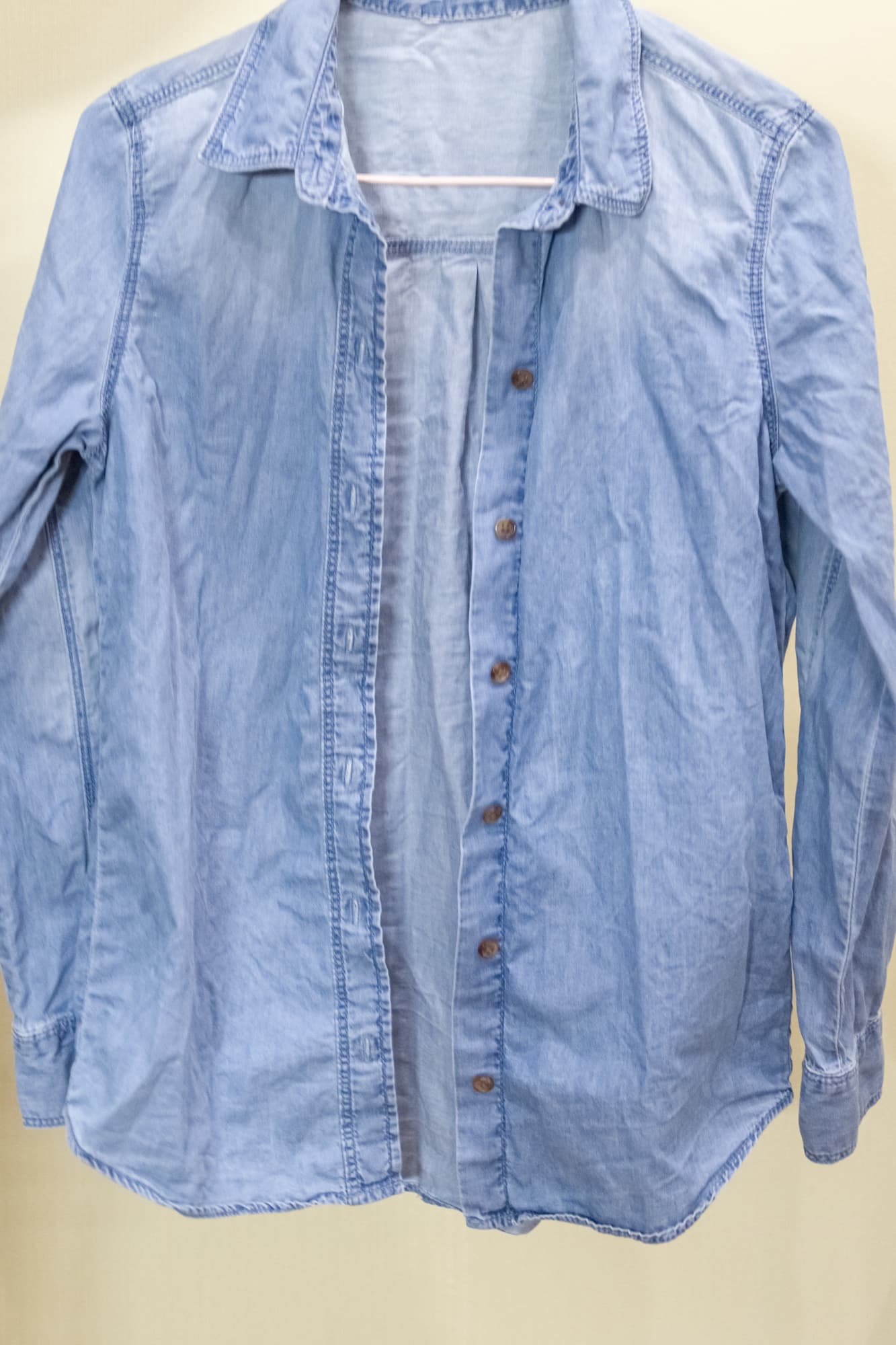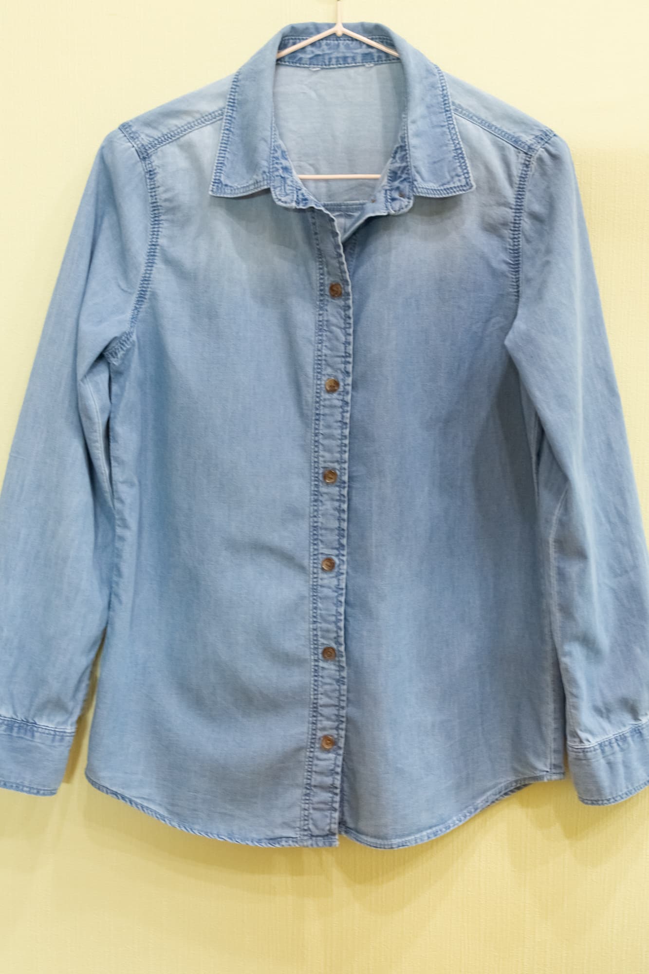 Рубашка из тонкой джинсовой ткани давно лежала в мятом состоянии и была немного пересушена.