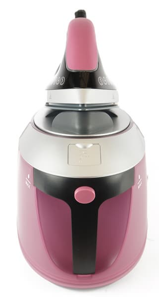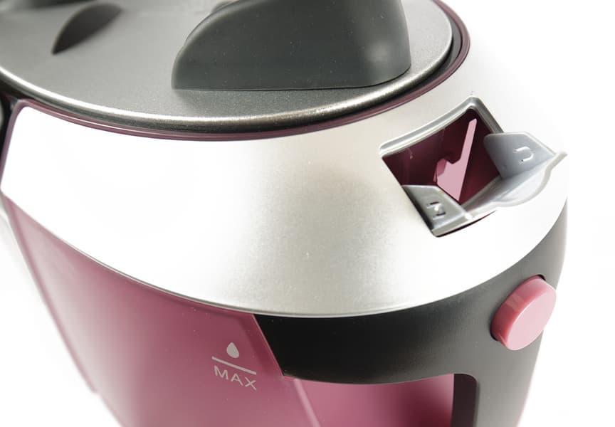 Конструкцию и размеры парогенератора можно назвать стандартными, внешне от своих собратьев он отличается лишь ярким необычным сочетанием черного и фиолетового цветов.