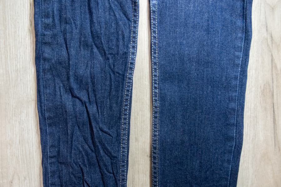 Для следующего теста мы взяли пересушенные, сильно помятые джинсы из плотной, жесткой ткани.
