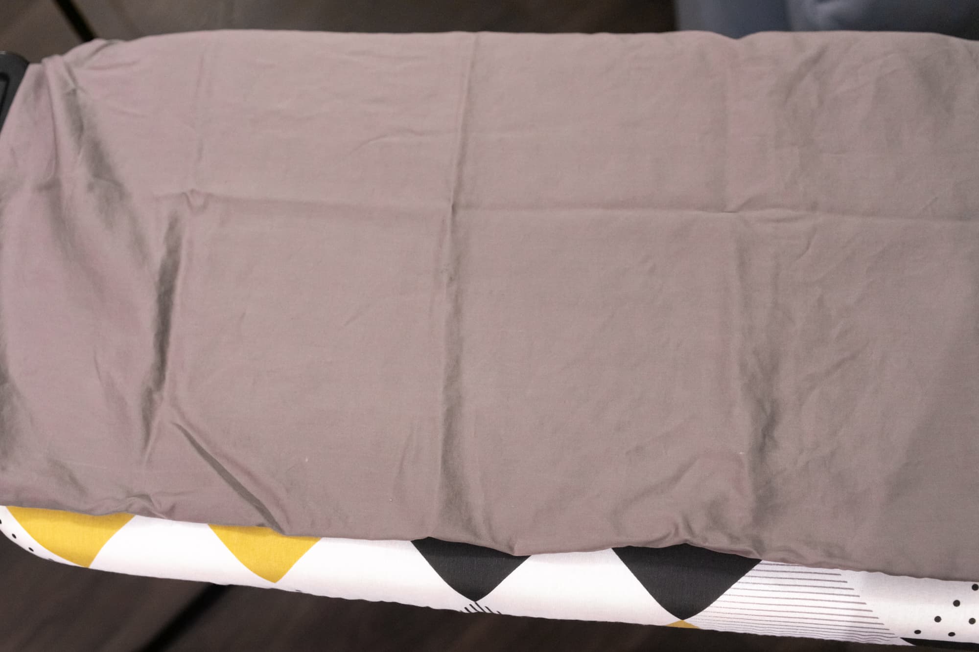 Сначала мы погладили одну наволочку. Средний уровень нагрева утюга и средняя мощность пара отлично справились с задачей за минуту.
