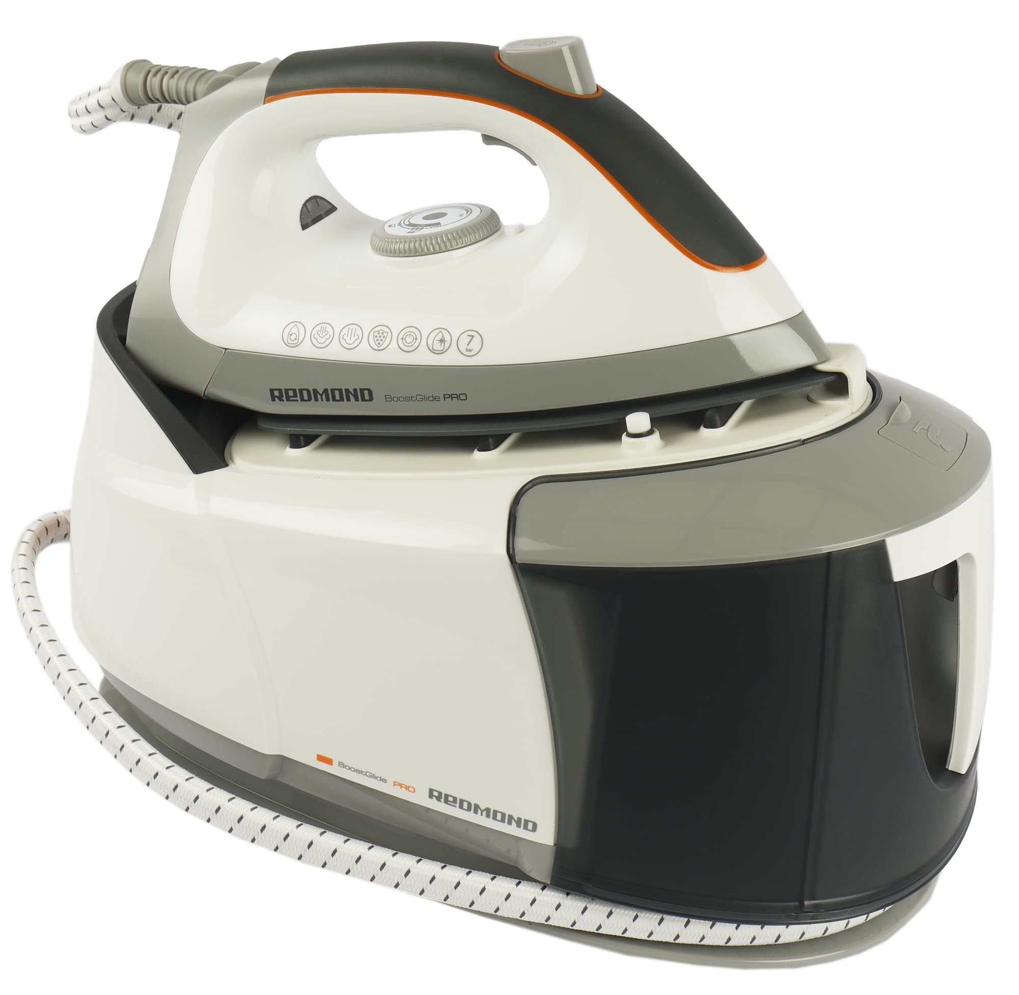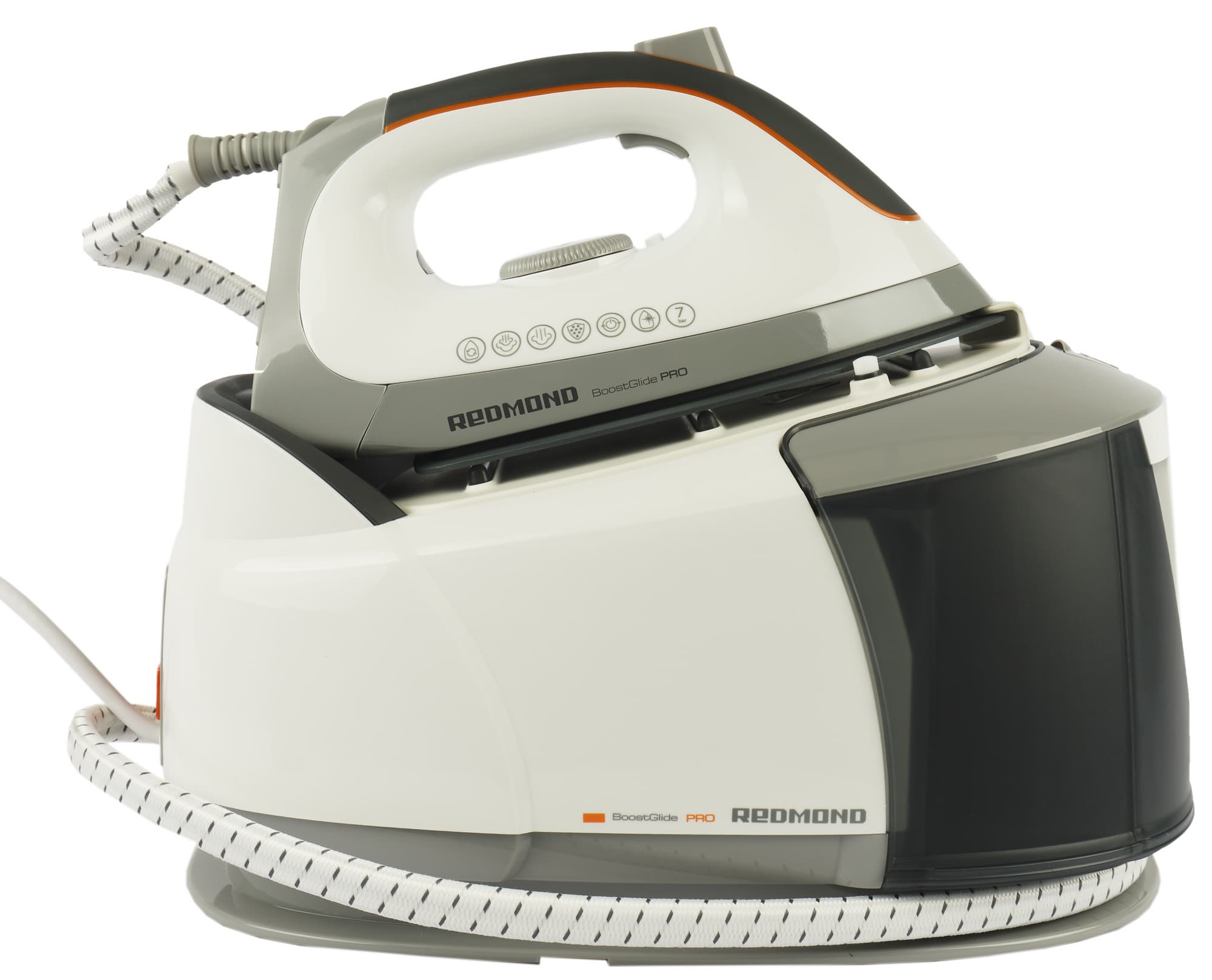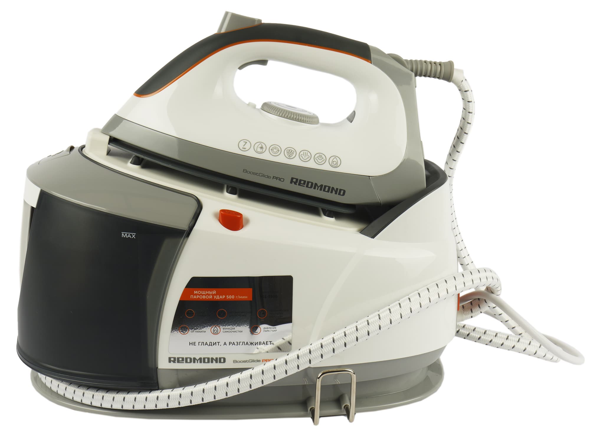 Управляется Redmond RSS-5908 тремя кнопками на корпусе базы, колесом-регулятором и двумя кнопками на утюге.