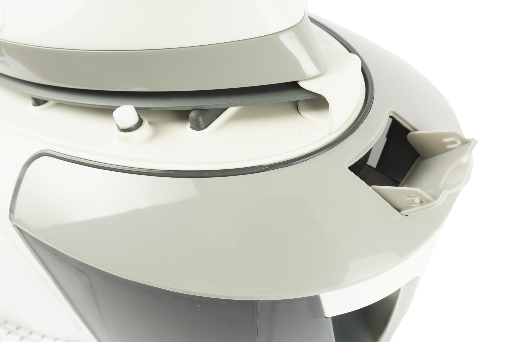 Емкость имеет отметку Max. Пластик хоть и темный, но уровень воды разглядеть в нем можно. Кнопка отсоединения бака для воды размещена с внутренней стороны ручки из белого пластика. Извлекается и ставится обратно емкость легко, держится в корпусе при этом крепко.