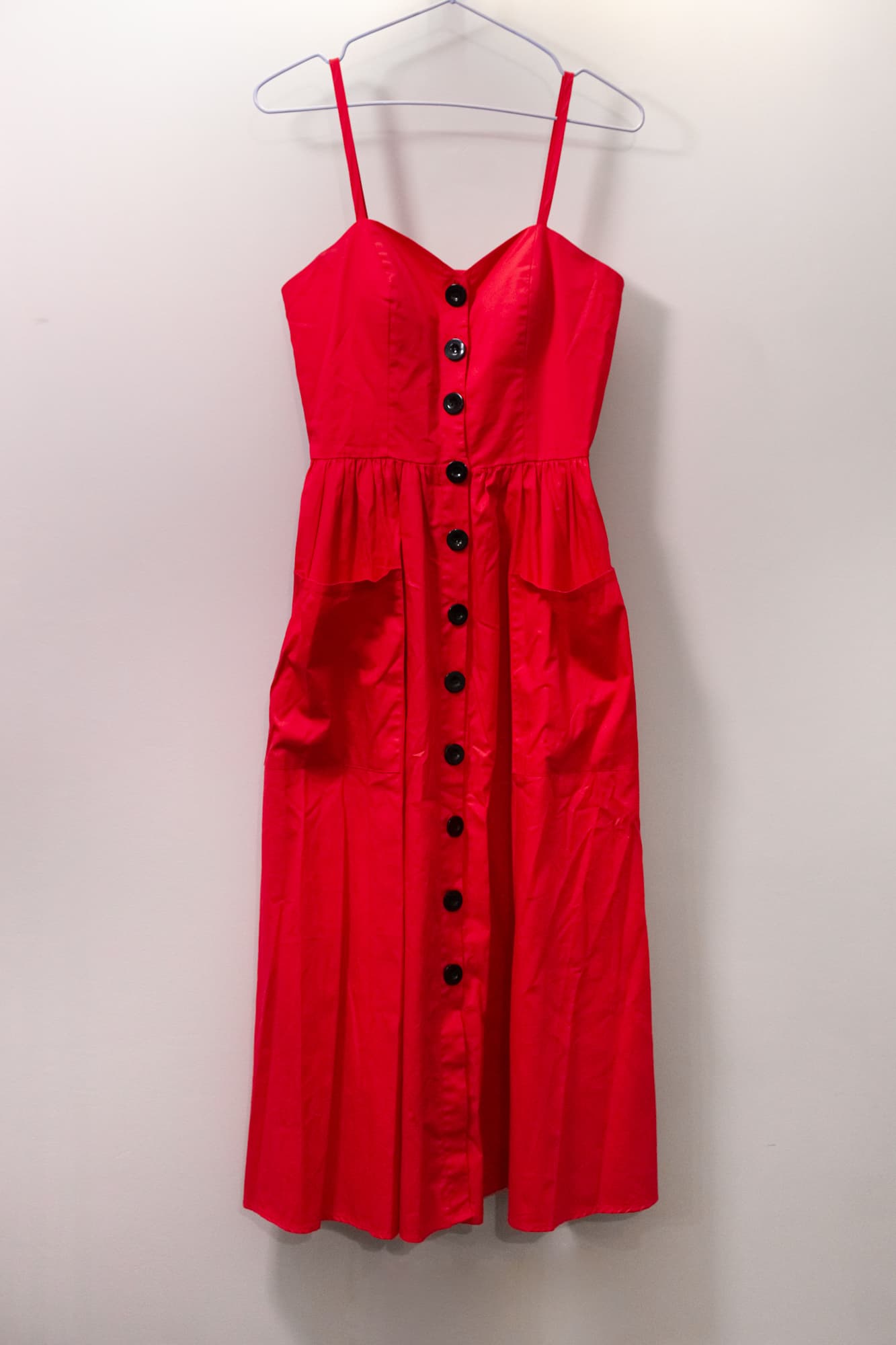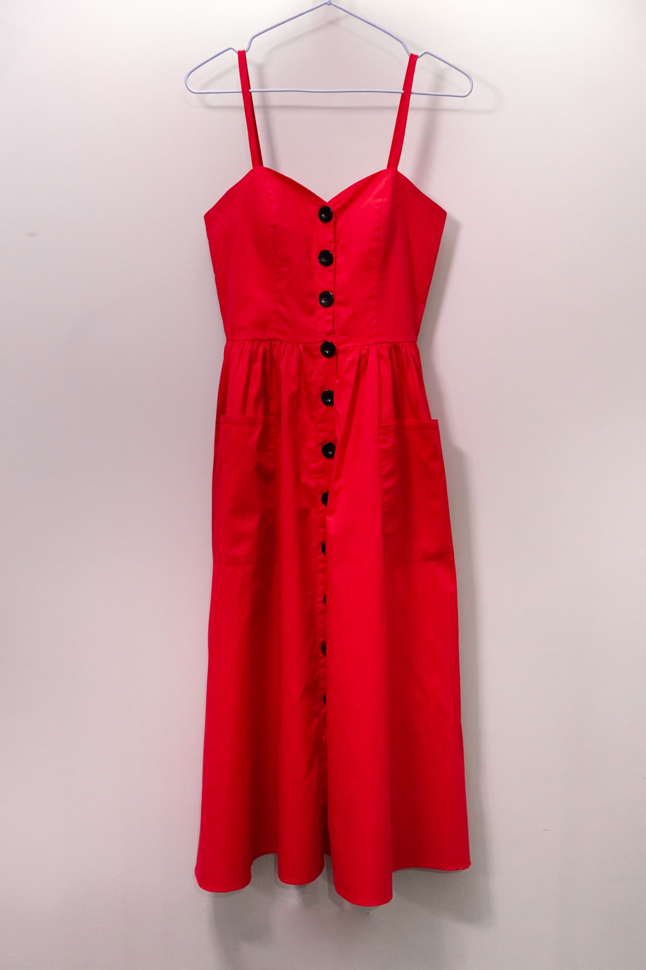 Сарафан из хлопковой ткани, которая легко мнется мы решили отпаривать вертикально. Парогенератор работал на максимуме своей мощности.