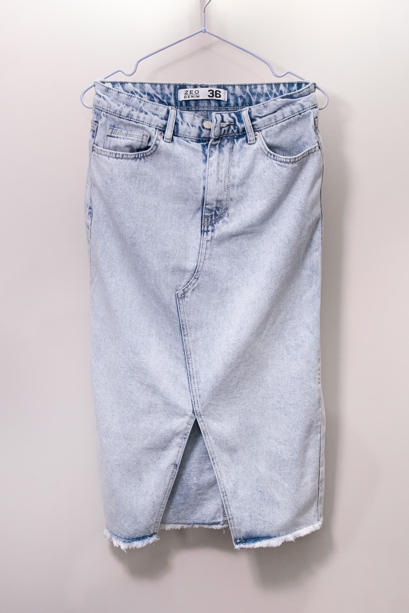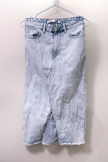 Юбка из плотной джинсовой ткани была сильно измята при стирке и высушена в таком виде на батарее.